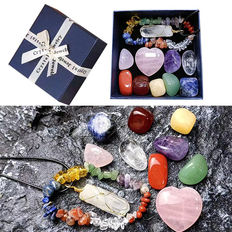 ✅9 piedras naturales + colgante de cuarzo transparente + pulsera ajustable